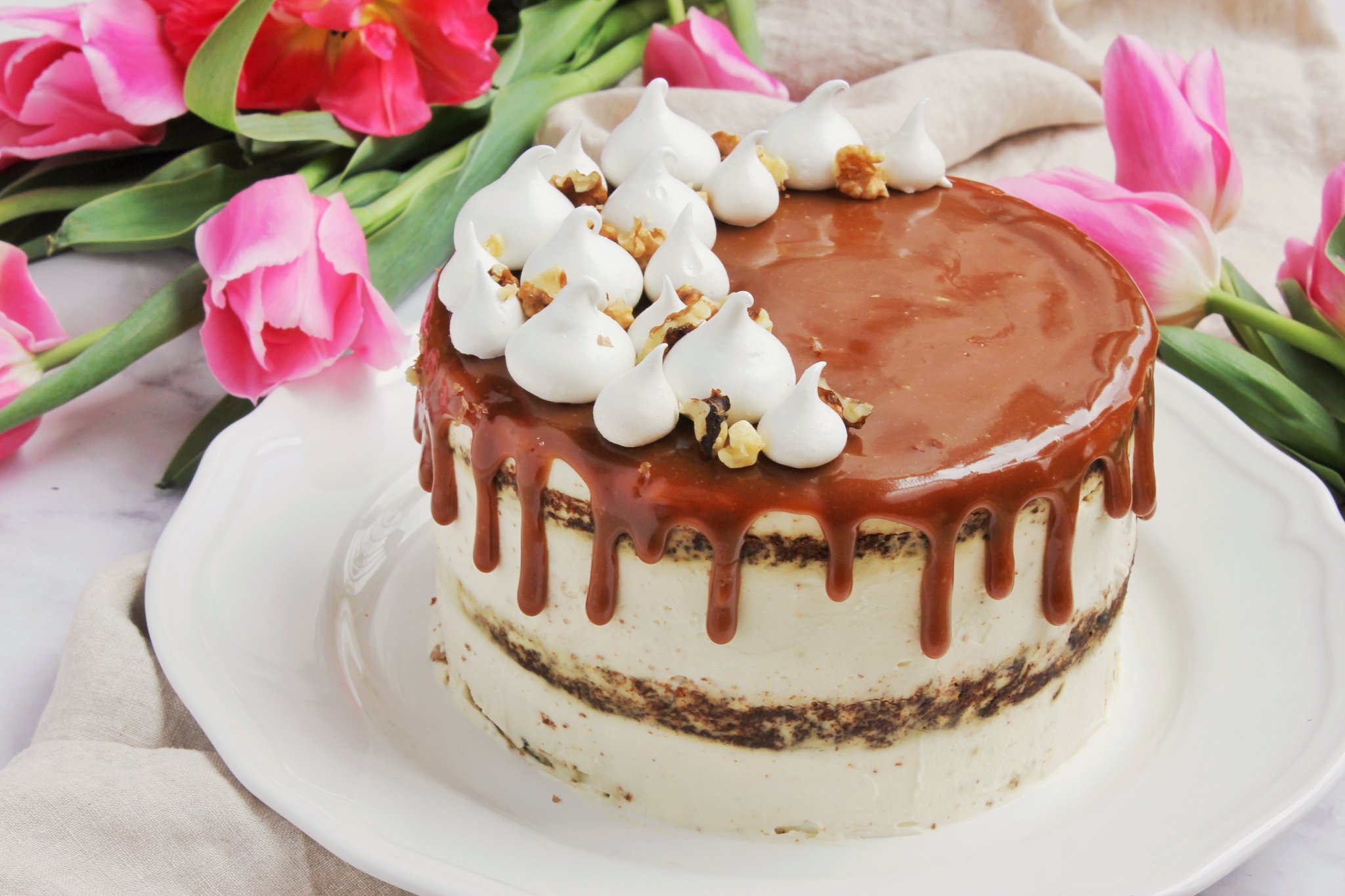 - Az elkészült habot a tortaalapra öntjük.