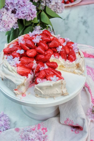 - A moussehoz a lapzselatinokat hideg vízbe áztatjuk. Az előkészített epreket pürésítjük, és egy lábasba tesszük a cukorral, majd addig melegítjük, amíg a cukor teljesen el nem olvad. Ekkor levesszük a tűzről és hozzáadjuk a kicsavart lapzselatinokat. Szobahőmérsékletűre hűtjük, majd hozzáadjuk a joghurtot. Végül a kemény habbá vert tejszínt is belekeverjük, majd az egészet a hűtőből kivett piskótaalapra öntjük. Egy éjszakára, de legalább néhány órára visszatesszük a hűtőbe, hogy a mousse kellően megszilárduljon.